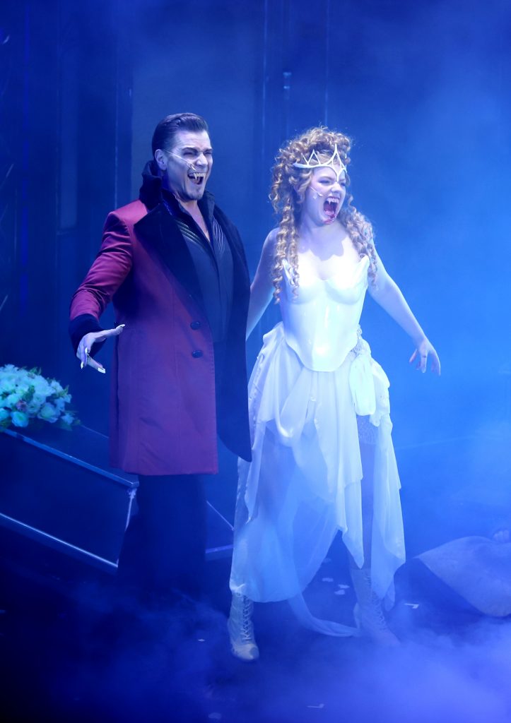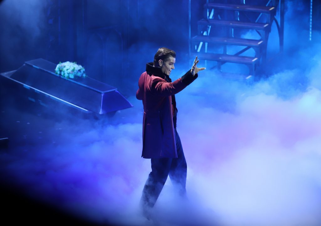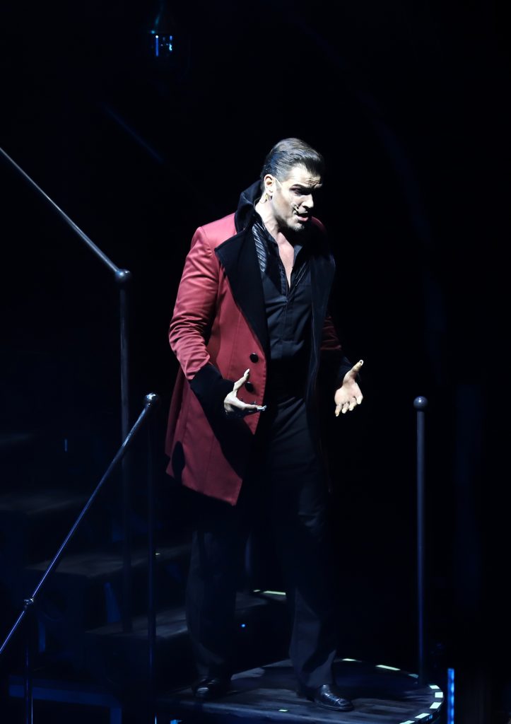 Schon beim Öffnen des Vorhangs wurde deutlich, dass diese Inszenierung nicht auf bloßen Gruseleffekt setzt, sondern auf Atmosphäre. Nebelschwaden zogen über die Bühne, kaltes Licht schnitt durch die gotisch anmutenden Kulissen, und die orchestralen Klänge entfalteten jene epische Wucht, für die Wildhorns Kompositionen bekannt sind. Die Musik ist das pulsierende Herz des Stücks – mal zart und sehnsuchtsvoll, dann wieder dramatisch und von dunkler Intensität getragen.Im Mittelpunkt des Abends stand Jan Ammann in der Titelrolle des Grafen Dracula. Mit charismatischer Präsenz, kraftvoller Stimme und feiner emotionaler Nuancierung zeichnete er keinen eindimensionalen Bösewicht, sondern eine tragische Figur zwischen ewiger Verdammnis und verzweifelter Liebe. Seine großen Solonummern wurden zu intensiven Höhepunkten des Abends.