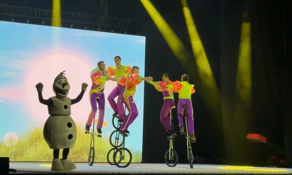 Besonders spannend war die Verknüpfung der beiden Teile. Während der erste Akt den Fokus auf Elsas Selbstfindung und die Kraft der geschwisterlichen Liebe legte, entführte der zweite Teil das Publikum tiefer in die Mythologie der Elemente. Der heimliche Star des Abends war – wie zu erwarten – Olaf, der mit seinem unerschütterlichen Optimismus und einer großen Portion Humor nicht nur die Kinder zum Lachen brachte.