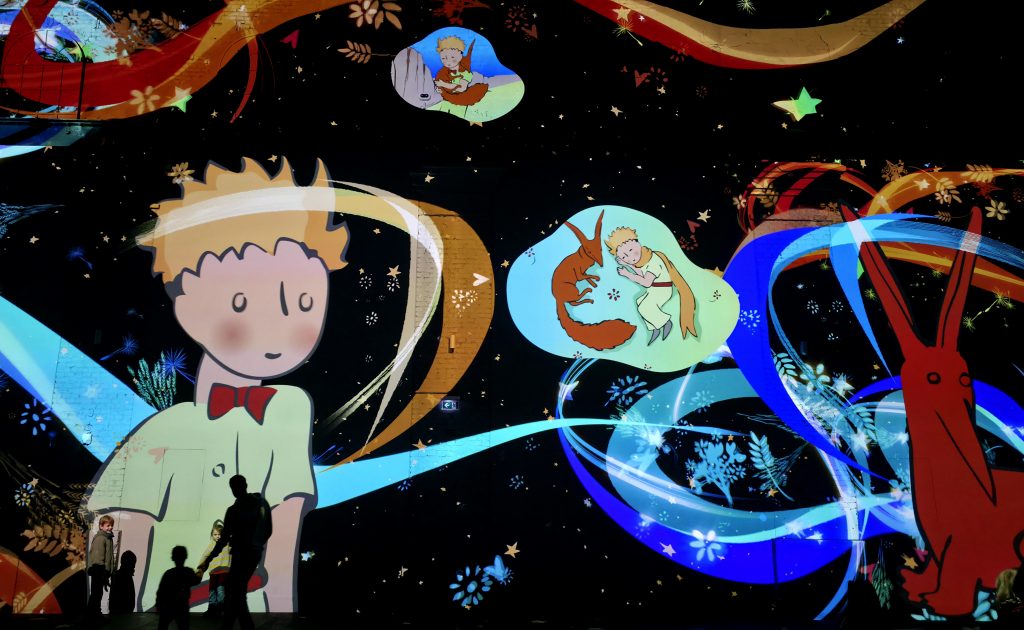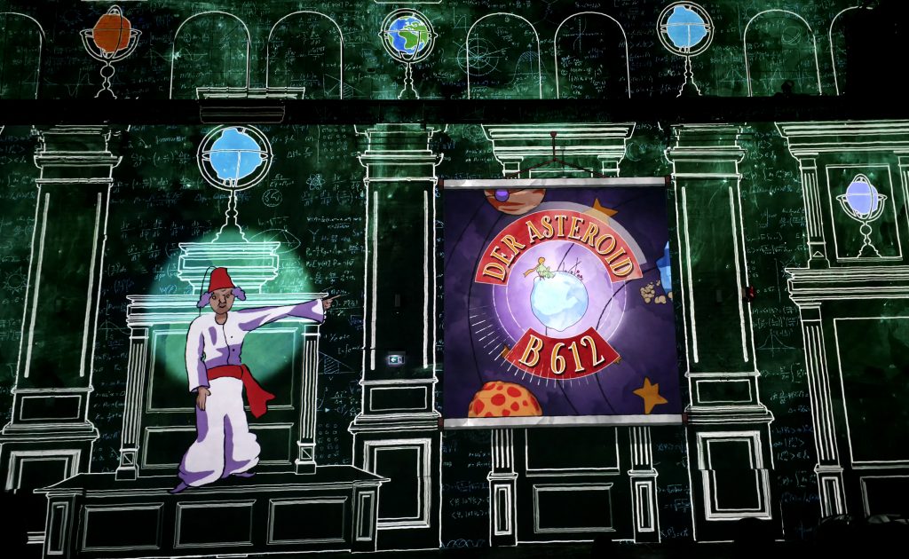 Die Inszenierung schafft den Spagat zwischen der nostalgischen Welt von Antoine de Saint-Exupéry und modernster Technik. Auf den über 13 Meter hohen Wänden und dem Boden der Halle werden die Original-Aquarelle des Autors projiziert, allerdings nicht statisch, sondern lebendig animiert.