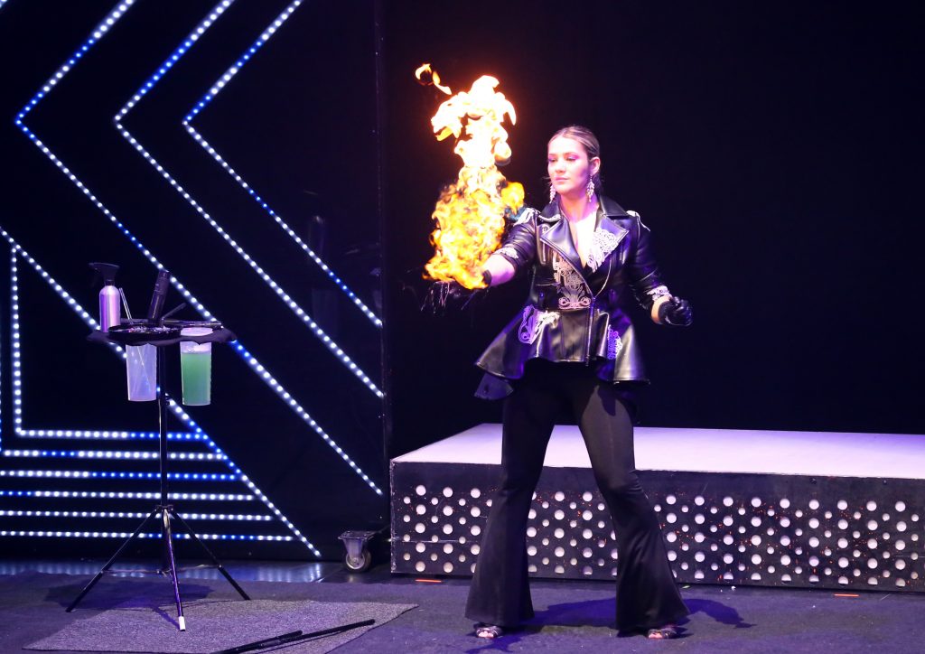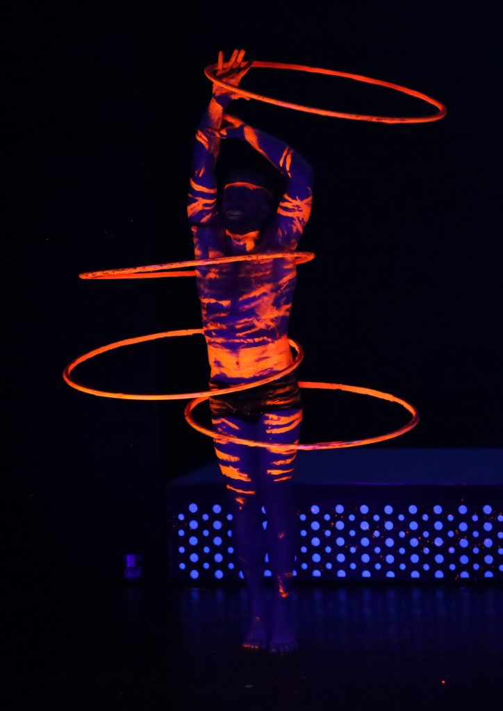 Ihm zur Seite steht ein international besetztes Ensemble, das die ganze Bandbreite moderner Varietékunst zeigt: Von Vlada Dapper, die mit elegantem Tanz und ausdrucksstarker Körpersprache beeindruckt, über Margot Bullmann und Martin Regouffre, deren Hand-auf-Hand-Akrobatik kraftvoll und poetisch zugleich wirkt, bis hin zu Daniel Sullivan, der mit Hula-Hoop und Irish-Dance-Elementen eine ungewöhnliche und mitreißende Mischung präsentiert. Auch das Duo Skating Phoenix begeisterte mit rasanten Rollschuhdarbietungen, bei denen Tempo und Präzision perfekt harmonierten.